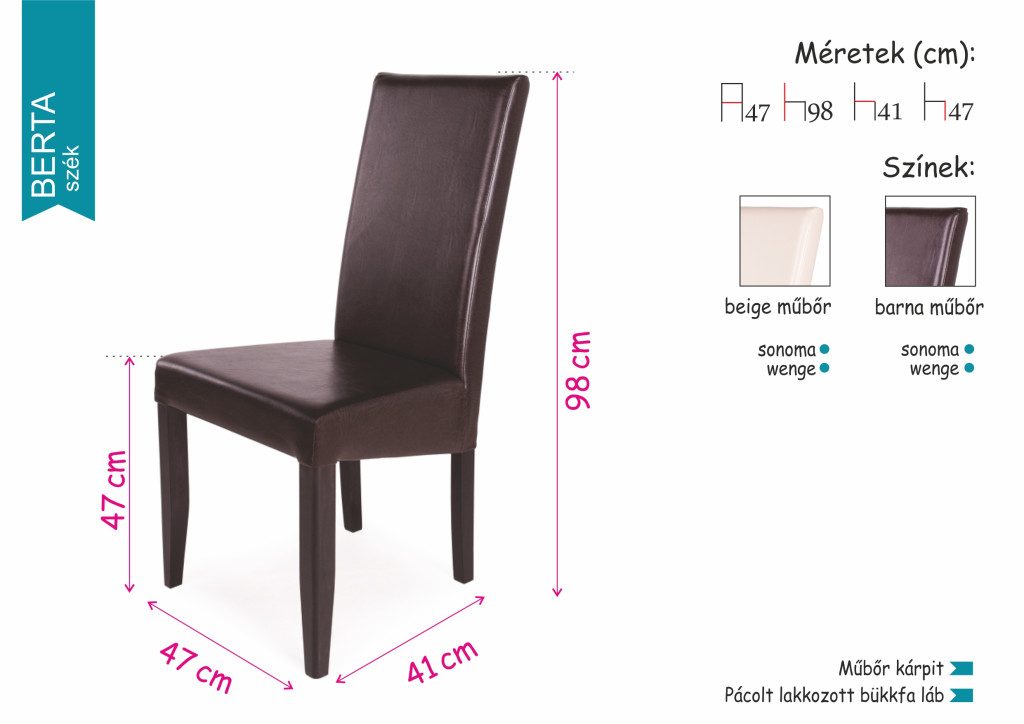 ülőlap magasság: 47 cm